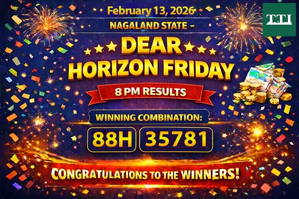 The results for the Nagaland State Lottery “Dear Horizon Friday” weekly draw are official. Held on February 13, 2026, at 8:00 PM, the draw (Draw No. 15) featured a grand 1st prize of ₹1 Crore.