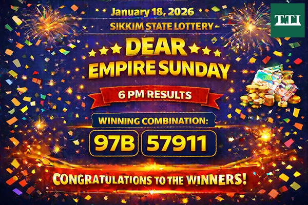 The Sikkim State Lottery department has officially announced the results for the Dear Empire Sunday weekly draw held on January 18, 2026. The draw took place at 6:00 PM, bringing life-changing news to several lucky participants across the state.