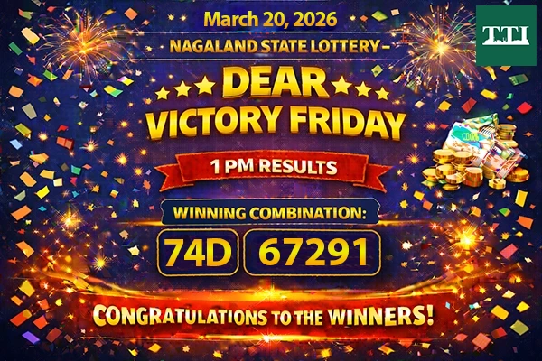 The weekend has arrived with great news for lottery enthusiasts! The results for the Nagaland State Lottery “Dear Victory Friday” weekly draw are now available. The draw, No. 20, was held on March 20, 2026, at 8 PM, with a grand prize of 1 Crore up for grabs.